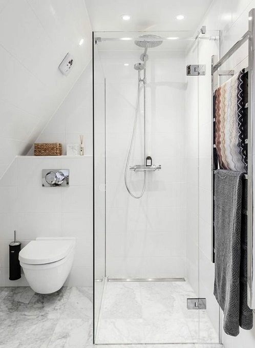 Αν βάλετε ντουζιέρα είναι η καλύτερη επιλογή για μικρά w.c. Είναι η διάφανη με σταθερό τζάμι ανοιχτή από τη μια πλευρά ή κλειστή και στο ίδιο επίπεδο με το υπόλοιπο μπάνιο.
