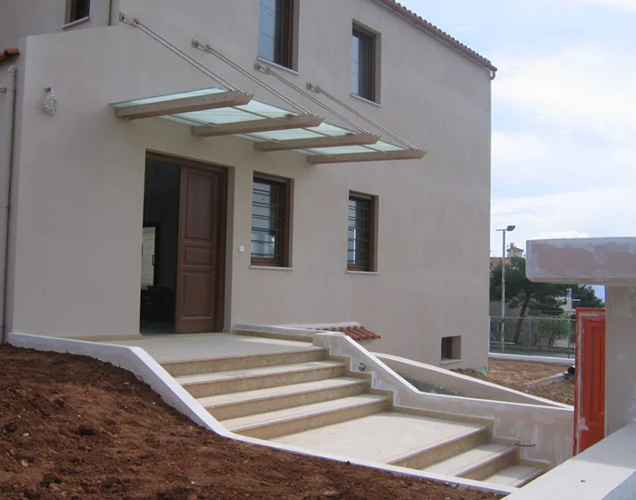 - Κατασκευές σκάλες, κεκλιμένα επίπεδα (ράμπες), και πεζούλια σε ακάλυπτους χώρους οικοπέδων