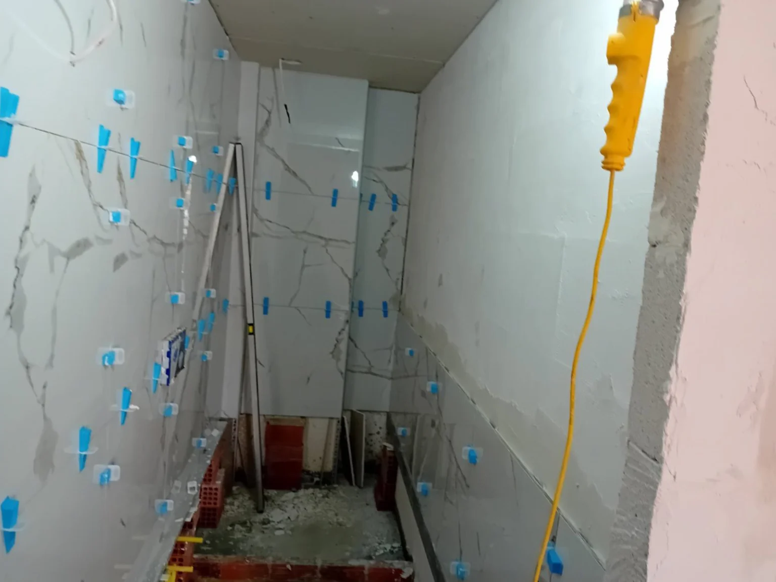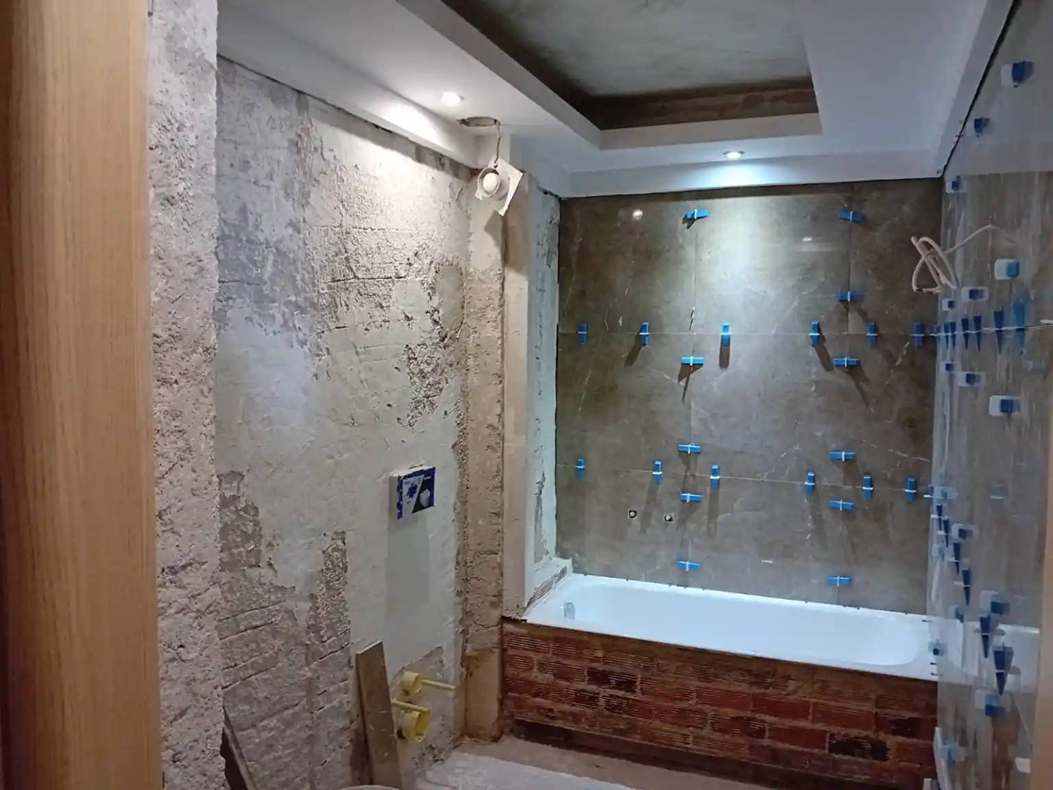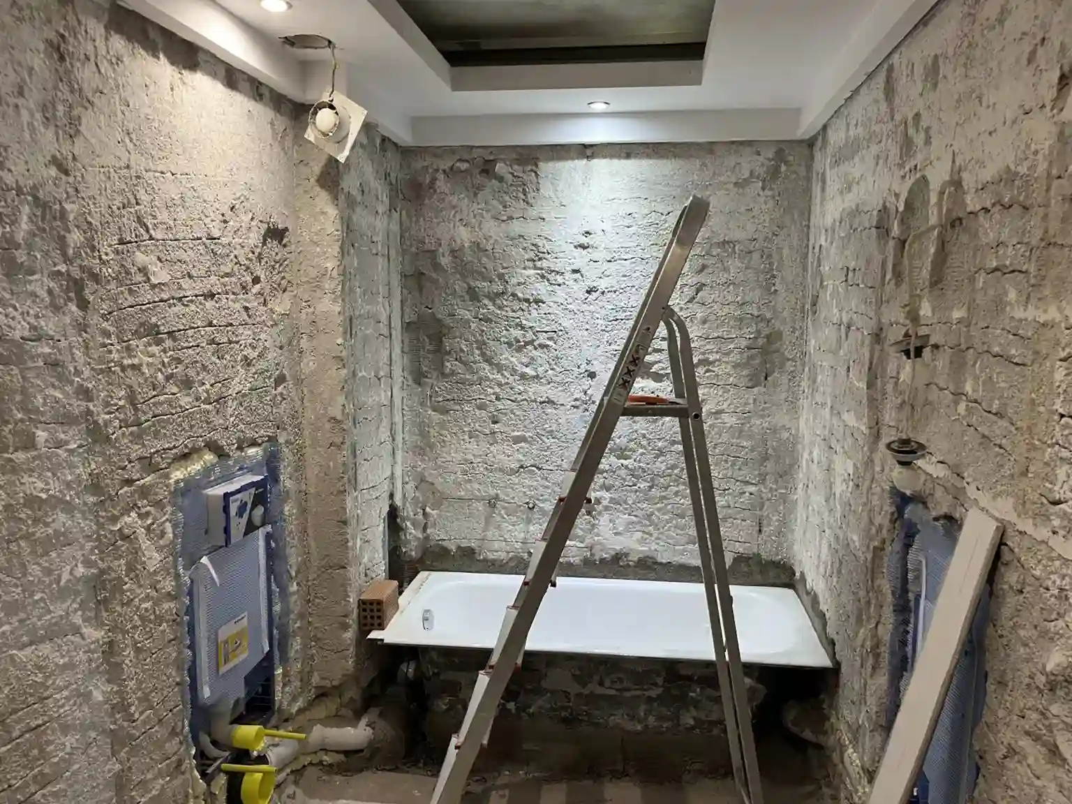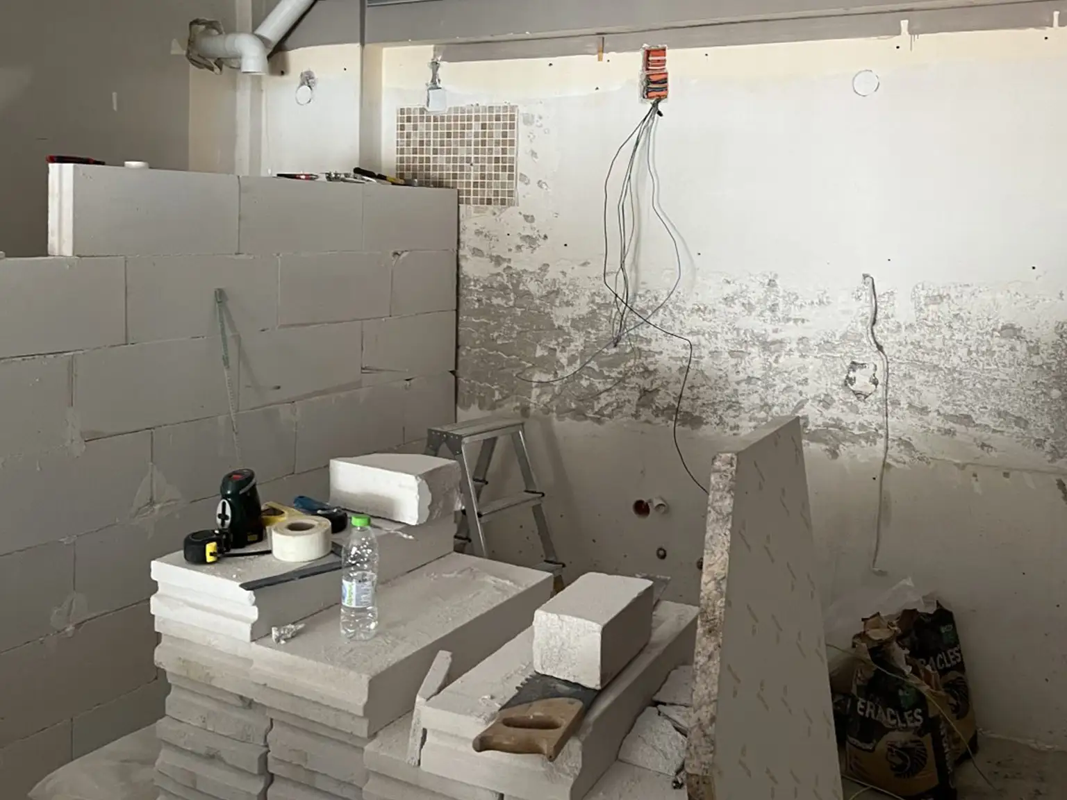 Το πρώτο πράγμα που έγινε ήταν να αποξηλωθεί η παλαιά κουζίνα. Επειδή η κουζίνα ήταν σε καλή κατάσταση μέρος των ντουλαπιών της εγκαταστάθηκαν σε άλλο σπίτι ανεξάρτητα με τους ιδιοκτήτες. Πλέον με ελεύθερο τον χώρο άρχισαν οι εργασίες κατασκευής του νέου wc. Παράλληλα ξεκίνησε η αποξήλωση του μπάνιου απο πλακάκια και είδη υγιεινής.